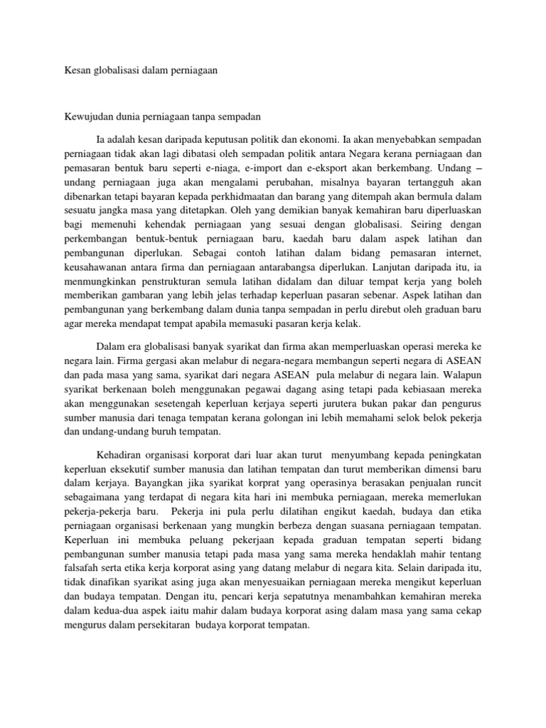 Kesan Globalisasi Dalam Perniagaan