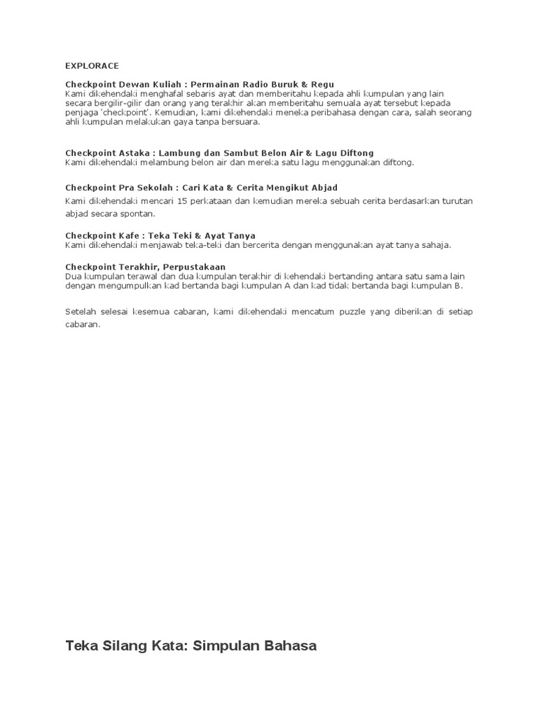 Contoh cabaran explorace. Uji lasak explorace ii 2007 selangor kl dan perlis program terkini. Contoh kbs explorace 1. Uji lasak explorace i 2006 selangor kl dan perak 2.