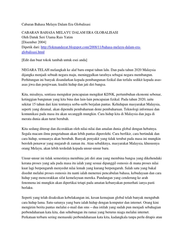 Cabaran bahasa melayu 1. Bangi 1 ogos 2018 bahasa melayu bukan bahasa sesebuah bangsa tetapi ianya bahasa kebangsaan kepada negara malaysia kata prof dr mohd ridhuan tee abdullah. Academia edu is a platform for academics to share research papers.