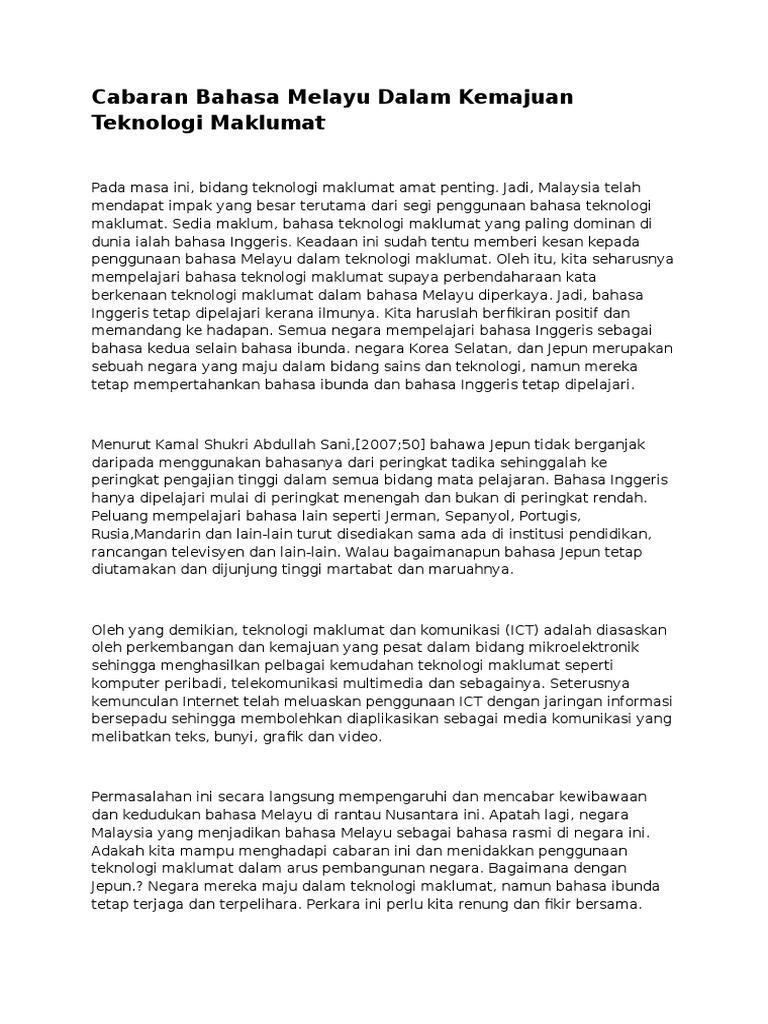 Pdf Memperkukuh Peranan Bahasa Melayu Dalam Dunia Teknologi