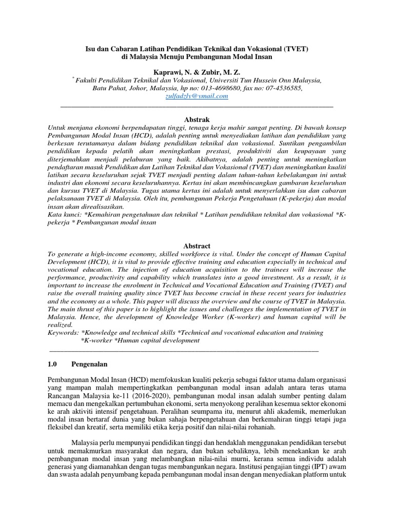 Review Paper Isu Dan Cabaran Latihan Pendidikan Teknikal Dan Vokasional Tvet Pdf
