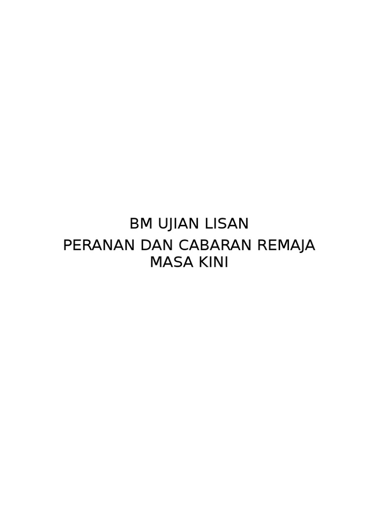 Peranan Dan Cabaran Remaja Masa Kini Pt3 Lisan