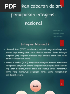 Integrasi nasional guru dan cabaran semasa slideshare uses cookies to improve functionality and performance and to provide you with relevant advertising. Cabaran cabaran dalam integrasi nasional dalam proses mengintegrasikan kumpulan etnik yang pelbagai di negara kita kerajaan mengalami berbagai bagai halangan seperti berikut. Kondisi seperti ini.