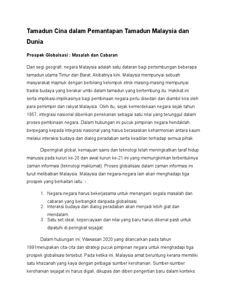 Tamadun Cina Dalam Pemantapan Tamadun Malaysia Dan Dunia