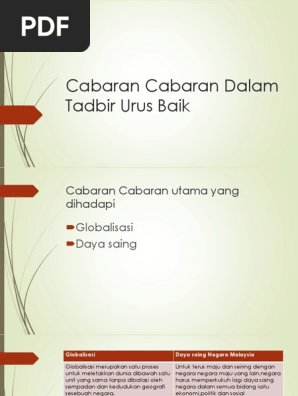 Cabaran Cabaran Dalam Tadbir Urus Baik Pdf Document
