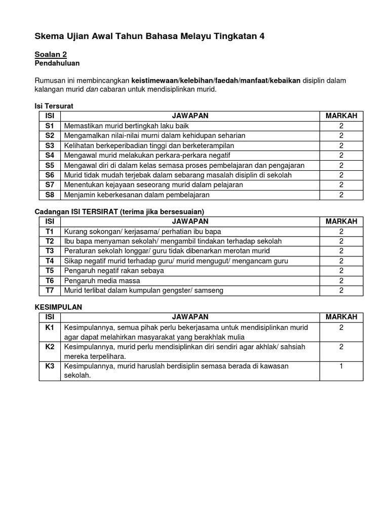 Skema Ujian Awal Tahun Bahasa Melayu Tingkatan 4 Soalan 2