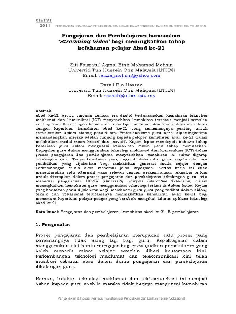 Pembelajaran di abad 21 harus dapat mempersiapkan generasi manusia indonesia menyongsong kemajuan teknologi informasi dan komunikasi dalam kehidupan bermasyarakat. 24 september 2010 abad ke 21 membawa masyarakat dunia ke satu lagi fasa penganjakan paradigma kehidupan. Ali3 1fakulti pendidikan universiti kebangsaan malaysia ukm malaysia e mail.