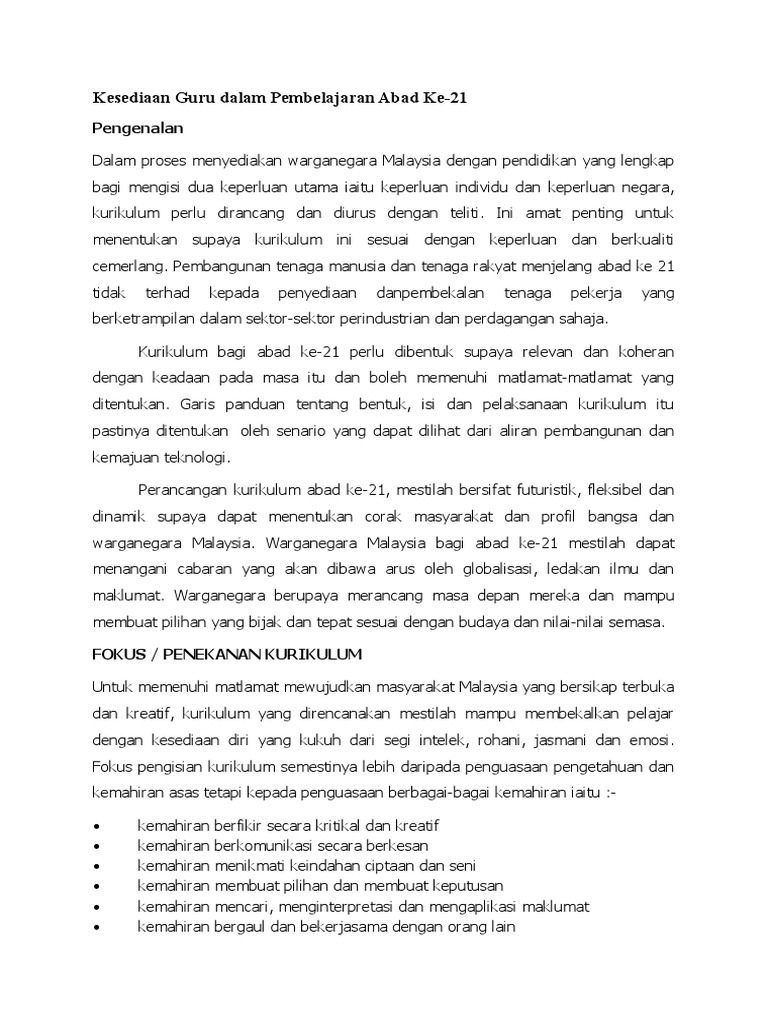 Kesediaan Guru Dalam Pembelajaran Abad Ke 21