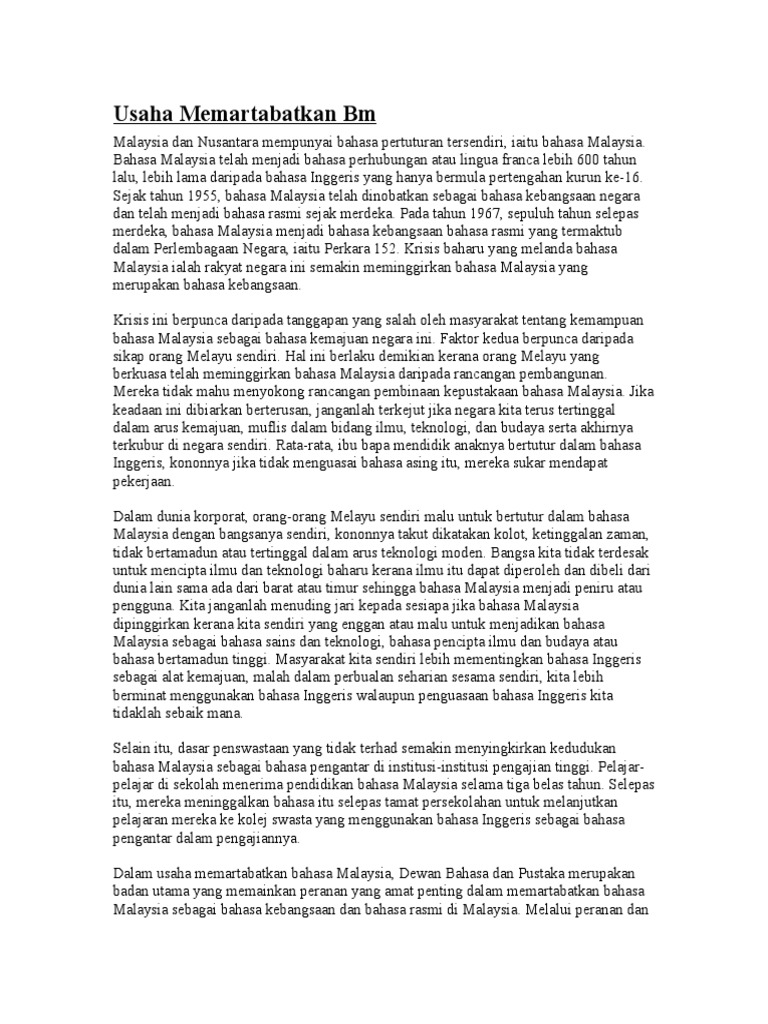 The proof of. Kepentingan memartabatkan bahasa melayu di persada dunia. Bahasa melayu telah termaktub dalam perlembagaan negara sebagai bahasa kebangsaan dan bahasa rasmi di malaysia.
