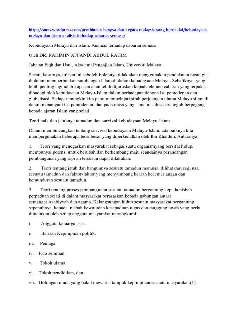 Kebudayaan Melayu Dan Islam Analisis Terhadap Cabaran Semasa