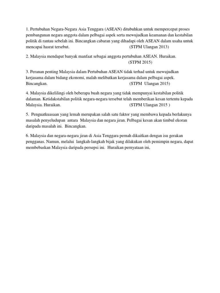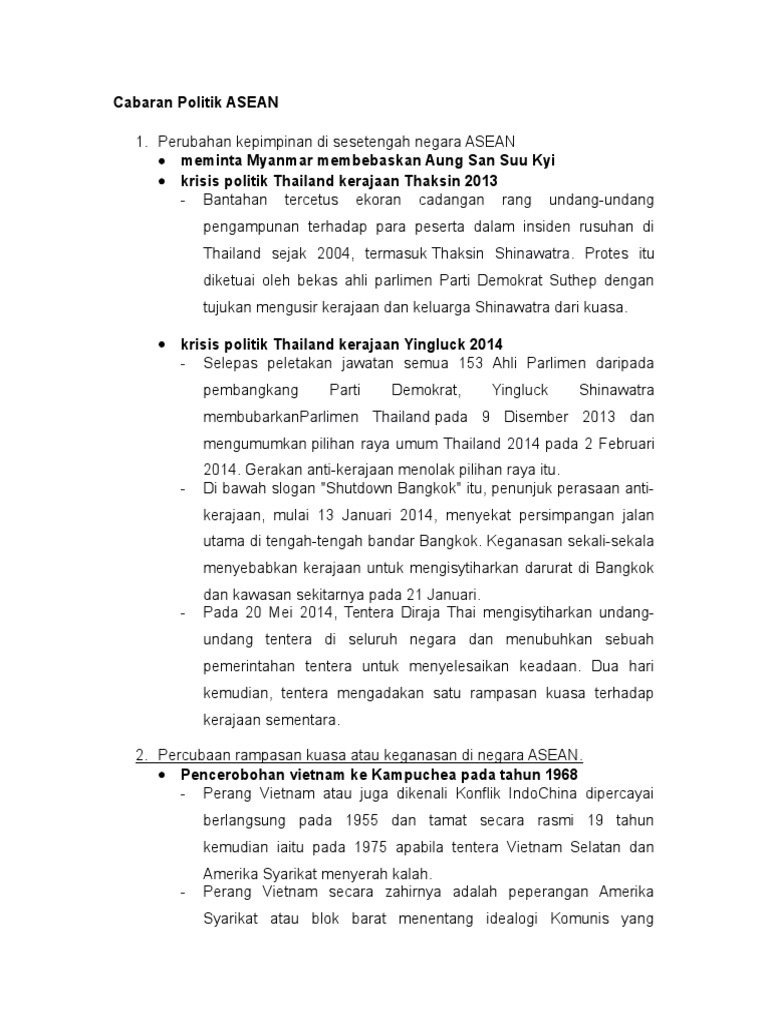 Politik draft a year ago by cikguzainon played 547 times 1 university other 54 average accuracy 1 save edit edit print share edit delete host a game live game live. Cabaran sebenar asean hari ini perdana menteri thailand abhisit vejjajiva mampu menarik nafas lega. Tonggak komuniti asean ialah ekonomi keselamatan dan sosiobudaya.