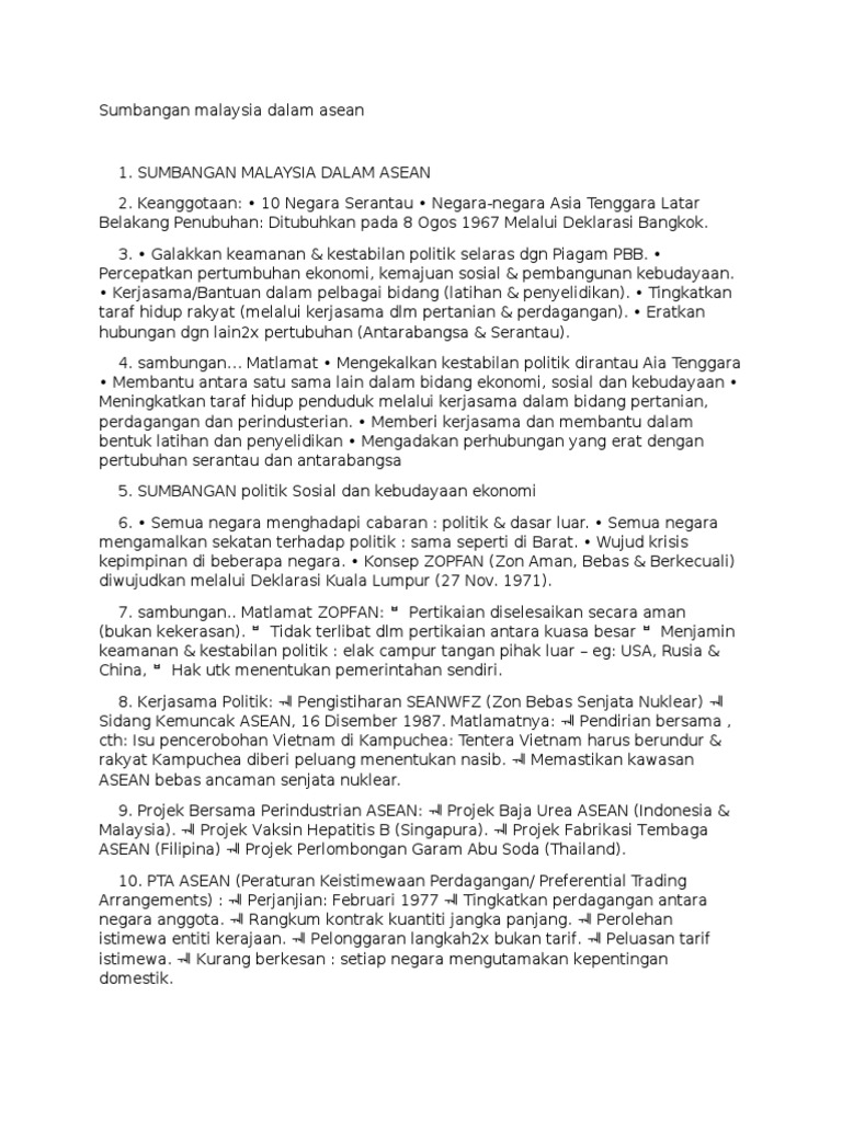 Sumbangan Malaysia Dalam Asean