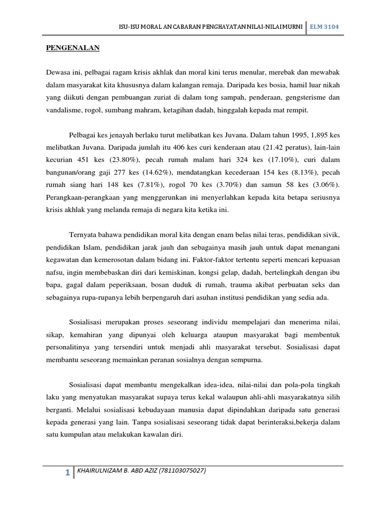 Doc Isu Isu Moral Dan Cabaran Penghayatan Nilai Nilai Murni Sahrinor Hapsah Academia Edu